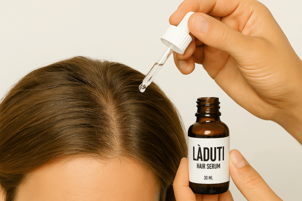 Upravo tu nastupa naš Laduti Serum za Rast Kose: Kombinira znanstveno istražene sastojke kao što su AnaGain™ (iz ekstrakta klica graška) i Procapil™ (s Biotinoyl-GHK, Apigeninom i Oleanolnom kiselinom). Poznato je da ovi aktivni sastojci revitaliziraju folikule dlake, podupiru vlasište i poboljšavaju uvjete za zdrav rast kose – bez upotrebe agresivnih kemikalija poput Minoksidila.